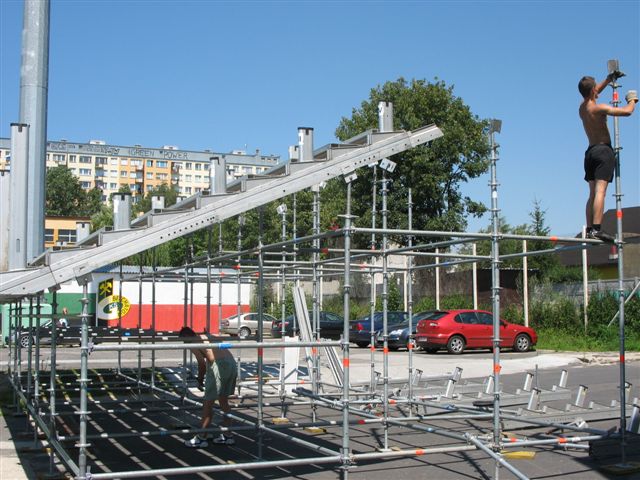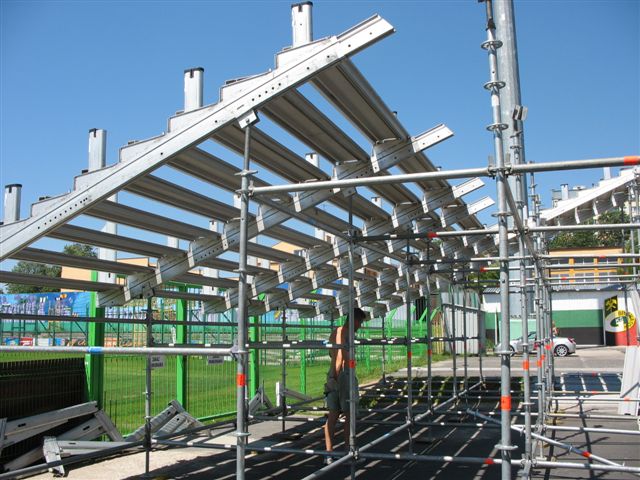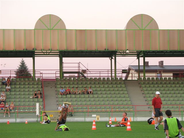 Od rana trwają prace przy montażu dodatkowej przenośnej trybuny. Ten specjalny sektor dla kibiców VIP na 150 miejsc powstaje po wschodniej stronie obiektu przy klubowym parkingu i będzie tam usytuowany do końca rundy jesiennej.