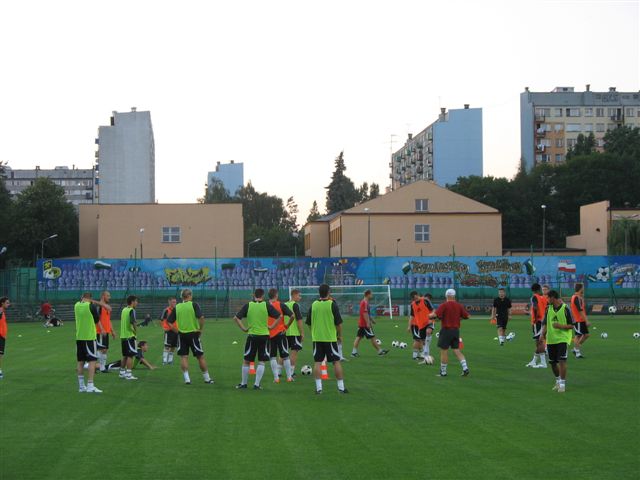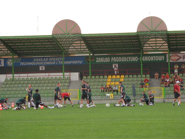 O godz. 20 rozpoczął się pierwszy po powrocie z Niemiec trening PGE GKS. Wicemistrzowie Polski rozpoczęli go od wizyty w hali, gdzie spędzili 40 minut. Sztab szkoleniowy dysponował tego dnia 25-osobową kadrą zawodników, która przeniosła się z parkietu na murawę, by w godzinie meczowej (20:45) przeprowadzić trening na arenie czwartkowego meczu.