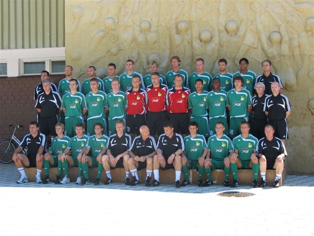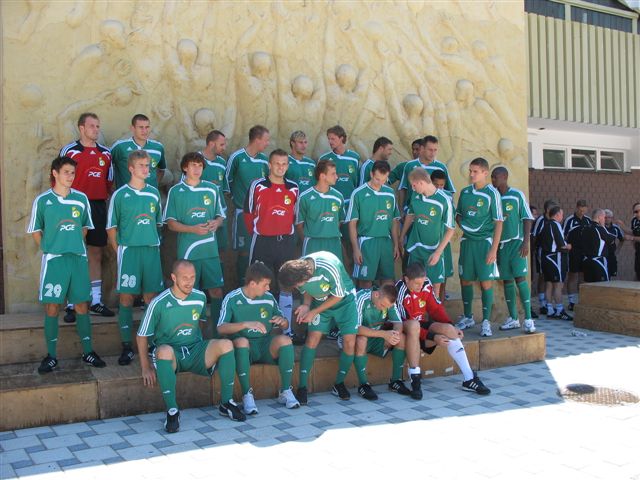 O godz. 14 przed halą sportowo-widowiskową w Bełchatowie odbyła się otwarta sesja fotograficzna kadry PGE GKS Bełchatów. Wicemistrzowie Polski pozowali w nowych zielono-białych strojach, w których wystąpią w czwartek przeciwko FC AMERI. Sesja odbyła się na tle płaskorzeźby przedstawiającej sportowców dążących wytrwale do celu.