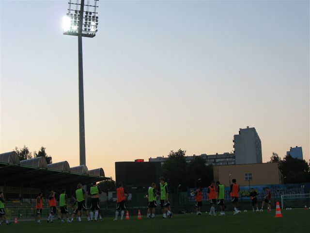 O godz. 20 rozpoczął się pierwszy po powrocie z Niemiec trening PGE GKS. Wicemistrzowie Polski rozpoczęli go od wizyty w hali, gdzie spędzili 40 minut. Sztab szkoleniowy dysponował tego dnia 25-osobową kadrą zawodników, która przeniosła się z parkietu na murawę, by w godzinie meczowej (20:45) przeprowadzić trening na arenie czwartkowego meczu.