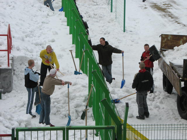 Od kilku dni w odśnieżaniu trybuny południowej i płyty głównej pomagają wychowankowie MOW w Łękawie, dzięki których pracy stadion coraz lepiej wygląda przed meczem z Łęczną.